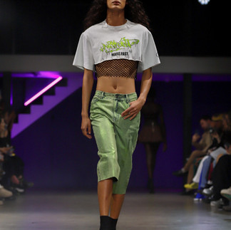 The frenetic energy of the show was cemented by the powerful, fast paced walks of the models. Trying to capture videos of the show as they walked the runway echoed the feeling of attempting to catch a glimpse of a musician whilst in a jostling crowd. Although my deficiencies as a camera man may have also played a small role in this inability to capture quality video footage.