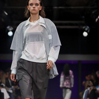 Fast's ability to fuse the worlds of couture and sportswear further elevates this collection. Elastic mesh panels and wind-resistant layers—typically the realm of performance wear—are expertly integrated into demi-couture pieces, resulting in garments that feel as much a part of the runway as they do the world of sport. This bold fusion elevates every piece, transforming functional materials into luxurious statements of style. The tension between the utility of sportswear and the precision of high fashion gives the collection its edge—each garment a delicate balance of practicality and avant-garde elegance.