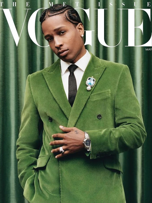 "Left: ASAP Rocky on the cover of the VOGUE Met Gala issue, styled by Law Roche, wearing Ozwald Boateng and Margot Mckinney brooch; Right: Ozwald Boateng Celebration of the 100th Anniversary of the Harlem Renaissance, at the Apollo Theater"