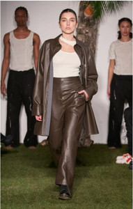 Within this collection, Selby exhibits seventeen astounding looks catered in menswear and womenswear arranged down the catwalk in various neutral hues of beige, ecru and off-white, constructed in natural fabrics including linens and organic cotton filtered through Selby’s collection. Representing the wearable materials worn and the types of canvas used to paint, he shows us examples of textured materials in darker shades that indicates a dustier surrounding, displaying visuals of the kind of conditions the artists used to work.