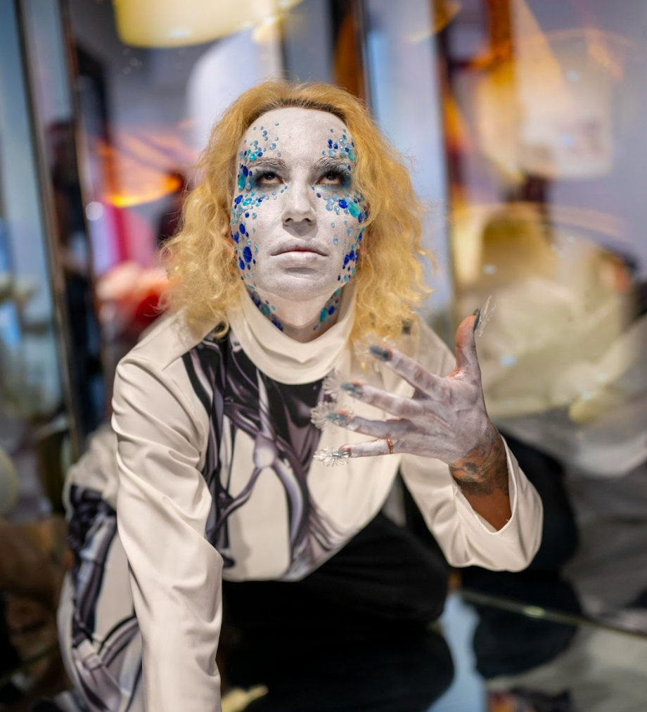 At the heart of this pioneering project is Elton Ilirjani, globally recognized by his model name HANKO, a poignant nod to his Albanian mother. More than just a model, Ilirjani is a renowned human rights activist, LGBT advocate, and performance artist known for his distinctive approach to the runway. For the "Zero Gravity Box" project, Ilirjani became an integral part of the performance art, entering the chamber clad in an avant-garde outfit designed by Naoko Tosa. His face, painted white and adorned with blue crystals, evoked an otherworldly, ethereal presence, perfectly complementing the futuristic premise.